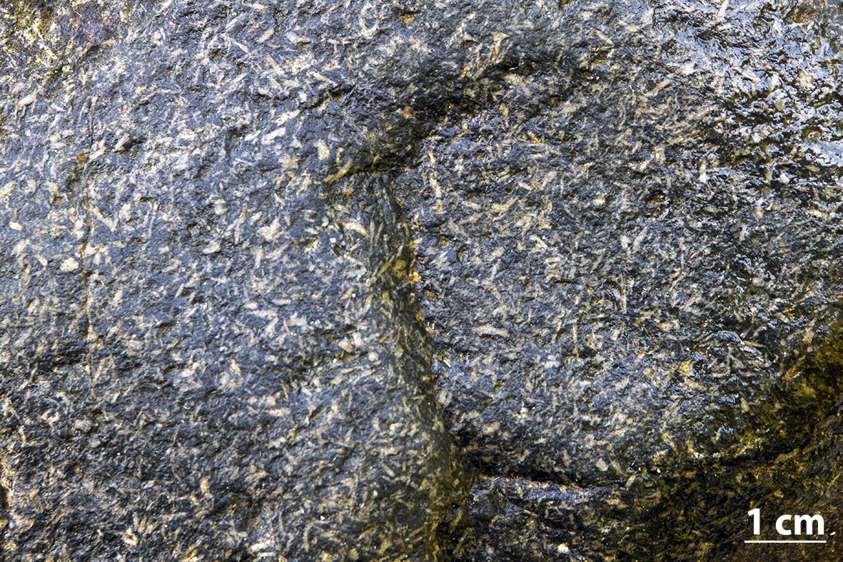 Denne basalt har nåleformede strøkorn af plagioklas. Bjergarten benævnes også plagioklasporfyr.