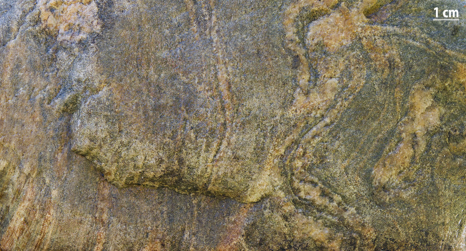 Denne prøve har folder og årer. Man kan derfor kalde den en åregnejs.
