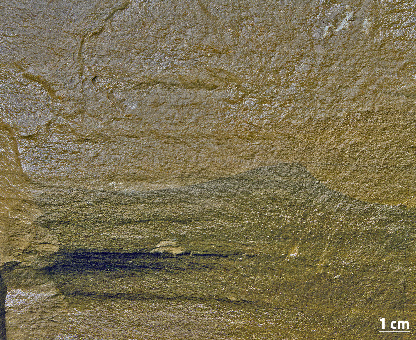 Kalifeldspat udgør op til 50 % af grundmassen og findes dels i grundmassen, dels som ½-3 cm store, ovale øjne med øjenringe af plagioklas. Grundmassens kalifeldspat varierer mellem gullig, rødgullig og kraftigt rød (fra okker over roastbeefrød til brunrød). Kalifeldspatøjnene kan være røde eller gullige. De er oftere lysere end grundmassen. Plagioklasen er grågrøn i frisk tilstand, men bliver hvidlig ved forvitring. – Ålandsrapakivi har grafisk tekstur. Princippet er, at små korn (”fisk”) af kvarts vokser ind gennem større krystaller af feldspat. Lidt ekstra hjælp: De grå og sorte, runde og uregelmæssige korn af kvarts og biotit skal man se bort fra. Se på den blegt rosa til røde masse af kalifeldspat. I denne er der nogle fine, aflange, mørke ”nister”. Det er den grafiske teksturs ”kvartsfisk”.