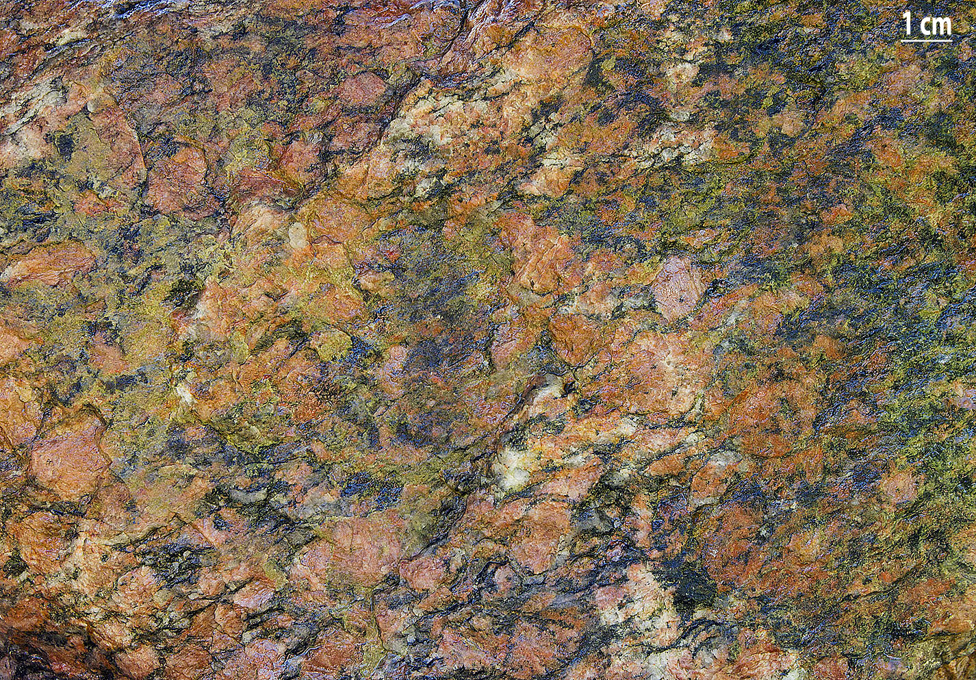 Striberne i gnejsen går uden om feldspat-kornene, og det tyder på at kornene er dannet før gnejsen blev dannet.
