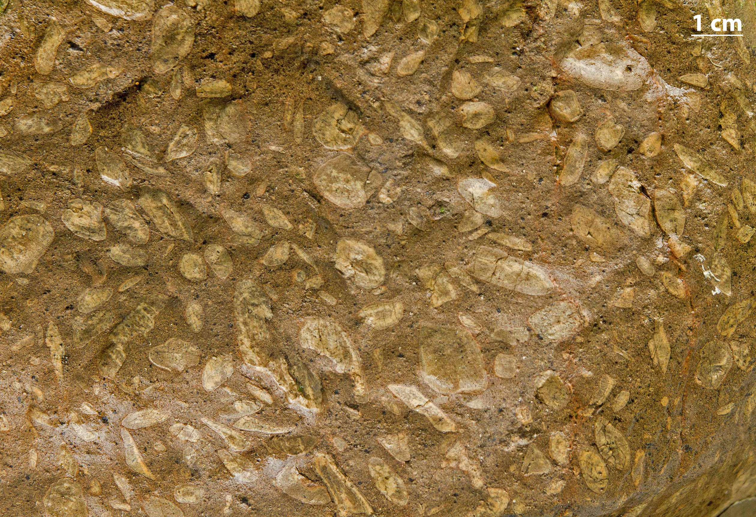 Strøkornene er som regel lyse, 1/2 -3 cm store, og i hvert fald nogle af dem er rhombe- eller bådformede. Grundmassen varierer mellem lysebrun, mørkebrun, rødviolet og sort. Strøkornenes antal og størrelse varierer fra lavabænk til lavabænk.