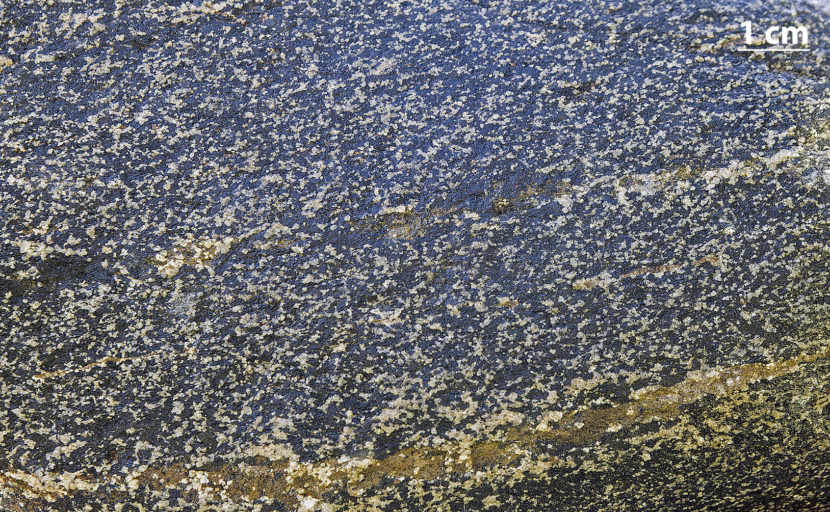 Denne amfibolit har nok basaltisk oprindelse. Lidt hornblende og biotit.