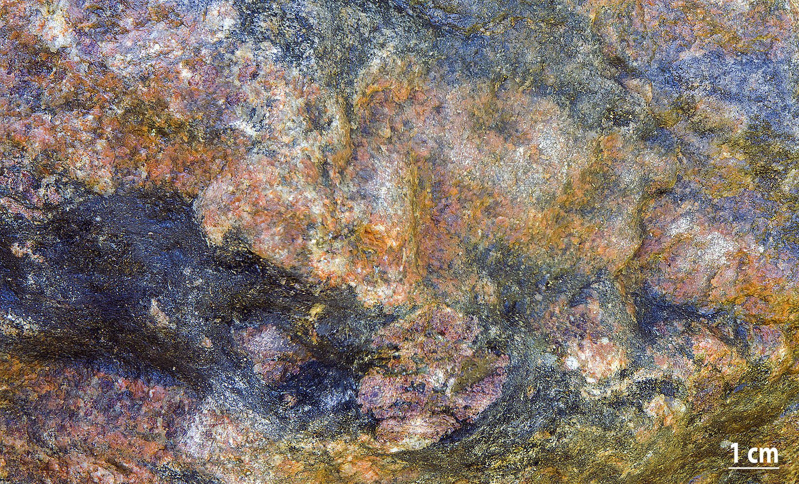 Hvis metamorfosen er sket ved ret høj temperatur, men uden at der har været større deformerende kræfter, kan der opstå en migmatitisk bjergart: Kvartsen og feldspaten (det granitiske materiale) er smeltet op og har samlet sig i lysere, ofte rødlige områder, mens de mørke mineraler, som udgøres af bl. a. biotit, bliver tilbage i næsten sorte områder.